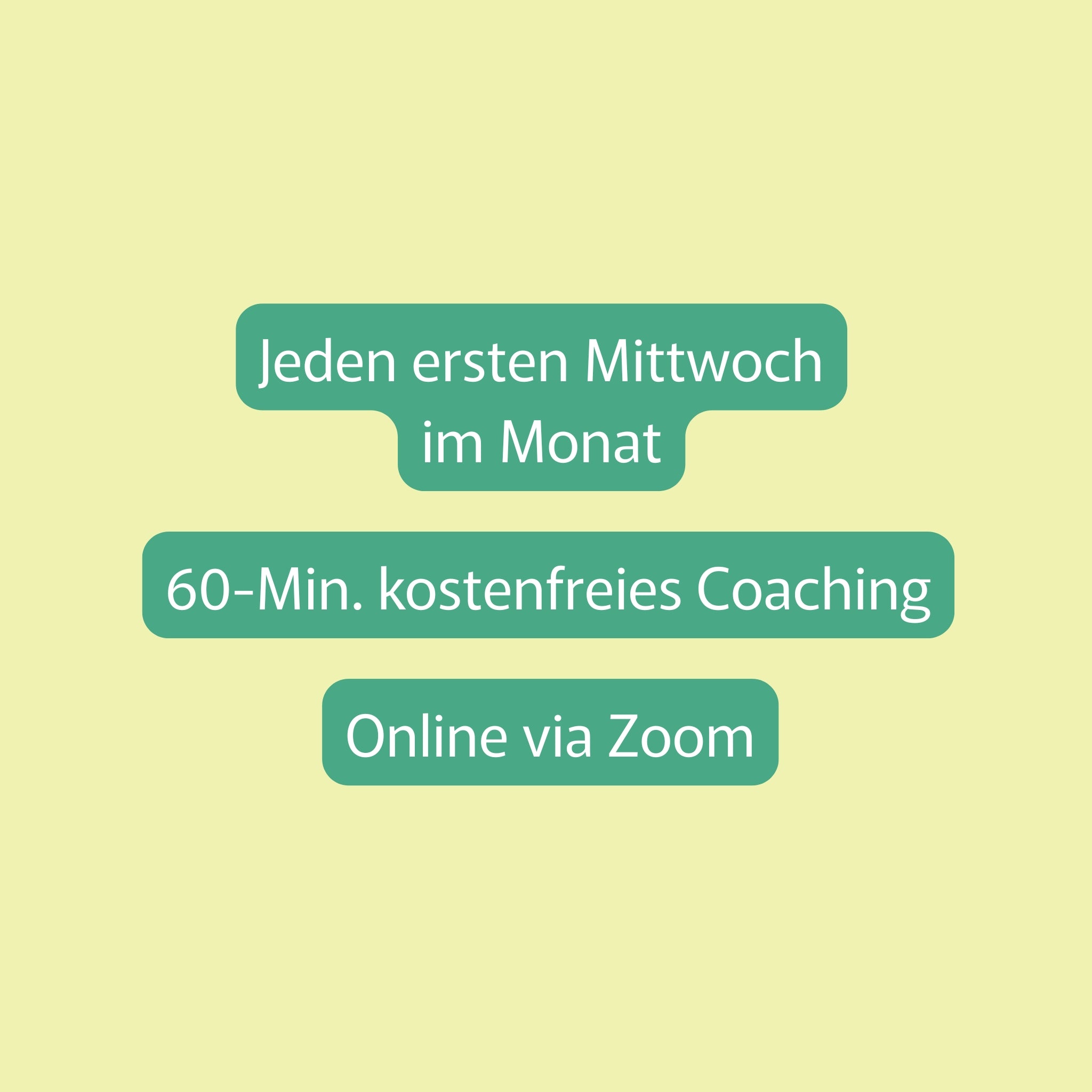 Am jeweils ersten Mittwoch im Monat biete ich kostenfreie 60-Min.-Coachings online via Zoom an. Ich möchte damit Räume öffnen, in denen du niedrigschwellig Verbindung und Support findest, frei von finanziellen Hürden. Diese Möglichkeit steht jedem Menschen zur Verfügung, auch wenn du z.B. bereits Coachee bei mir bist. Ich lade dich herzlich ein, sie zu nutzen! Gern auch monatlich, begrenzt auf ein Coaching pro Person und Tag.